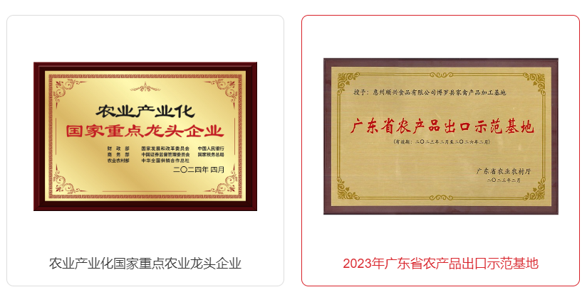 唐順興以其卓越的品質(zhì)和廣泛的市場(chǎng)覆蓋,成為了行業(yè)內(nèi)的佼佼者。公司通過(guò)了CIQ認(rèn)證,養(yǎng)殖基地被國(guó)家農(nóng)業(yè)部認(rèn)定為畜禽養(yǎng)殖標(biāo)準(zhǔn)化示范場(chǎng)、廣東省現(xiàn)代化美麗牧場(chǎng)等多項(xiàng)榮譽(yù)稱(chēng)號(hào)。唐順興的乳鴿等標(biāo)桿產(chǎn)品已獲廣東省名牌產(chǎn)品、無(wú)公害農(nóng)產(chǎn)品、粵字號(hào)農(nóng)產(chǎn)品認(rèn)定,品質(zhì)有保障。此外,“唐順興”商標(biāo)還榮獲廣東省著名商標(biāo)稱(chēng)號(hào),品牌影響力不斷提升。