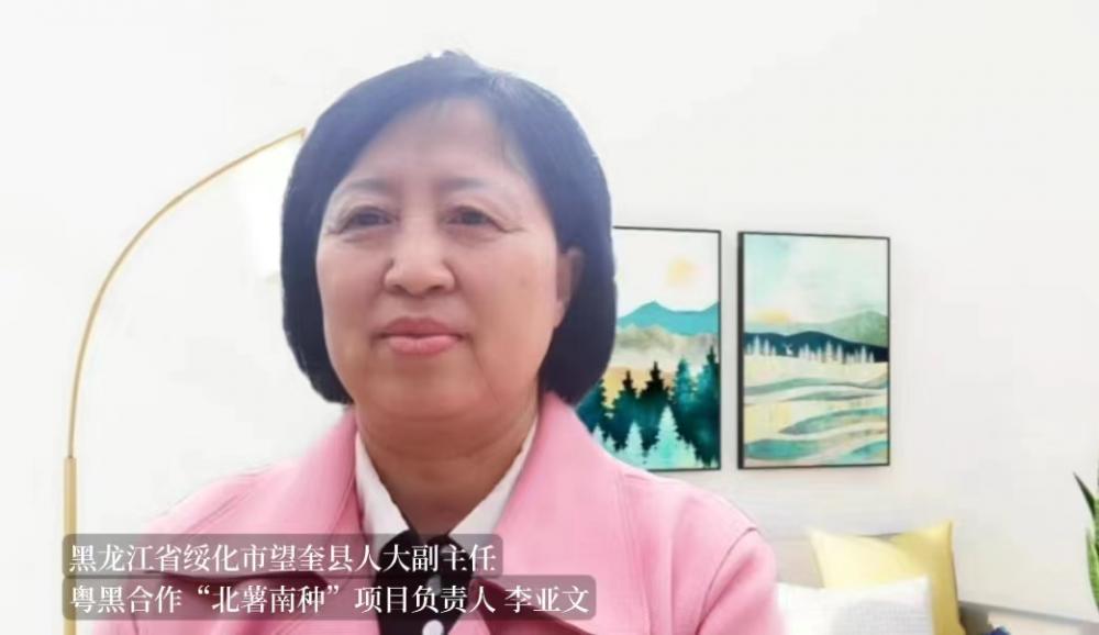 李亞文介紹粵黑合作的“稻—稻—薯”項(xiàng)目進(jìn)展情況。